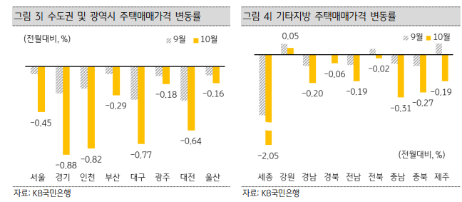 10월 전국 주택매매가격(-0.55%)은 3개월 연속 하락폭 확대